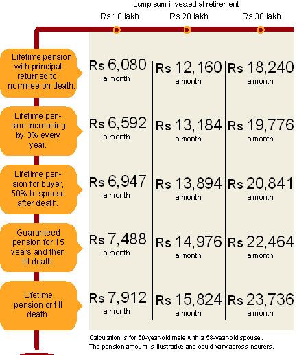 After you have evaluated your requirements, you can choose an annuity option that suits your needs best. Broadly, annuity plans are categorised into five segments (see The pension you can earn), though the range of options could vary depending on the insurer. The pension you can earn